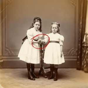 en el fotografía dañada, esto se parecía simple agarre. La restauración reveló la verdad. Los dedos de Clara estaban envueltos alrededor La muñeca de Emiline, sin apretarla suavemente. mano. Su pulgar era visible encima de La muñeca de Emiline, presionando la piel. Sus nudillos estaban blancos por el presión.