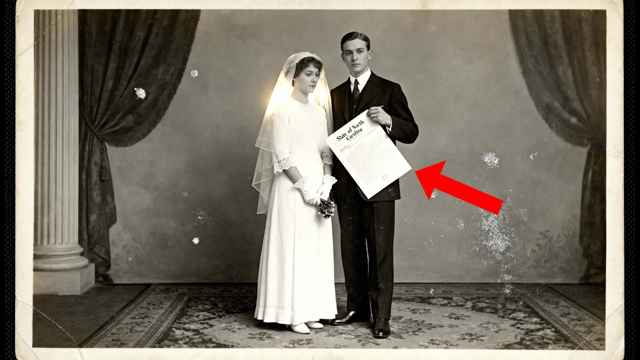 En la photo, una pareja joven posaba ante un telón de fondo pintado en un estudio de Raleigh. Ella vestía encaje blanco modesto en el cuello y las muñecas. Él llevaba un traje oscuro, planchado y limpio, probablemente prestado. Miraban a la Cámara con la inmovilidad cuidadosa que exigía la fotografía temprana, con expresiones atrapadas entre la esperanza y el nerviosismo. Pero algo no dejaba descansar a Eleanor. Un trozo de papel asomaba justo por encima del borde de la chaqueta del novio. Estaba doblado, con pliegues marcados, colocado allí con clara intención.