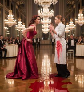 El tallo de la copa de vino se partió como un hueso frágil, el líquido carmesí explotando sobre el suelo de mármol. Su mano salió disparada, agarrando mi uniforme, la tela desgarrándose bajo sus uñas cuidadas.