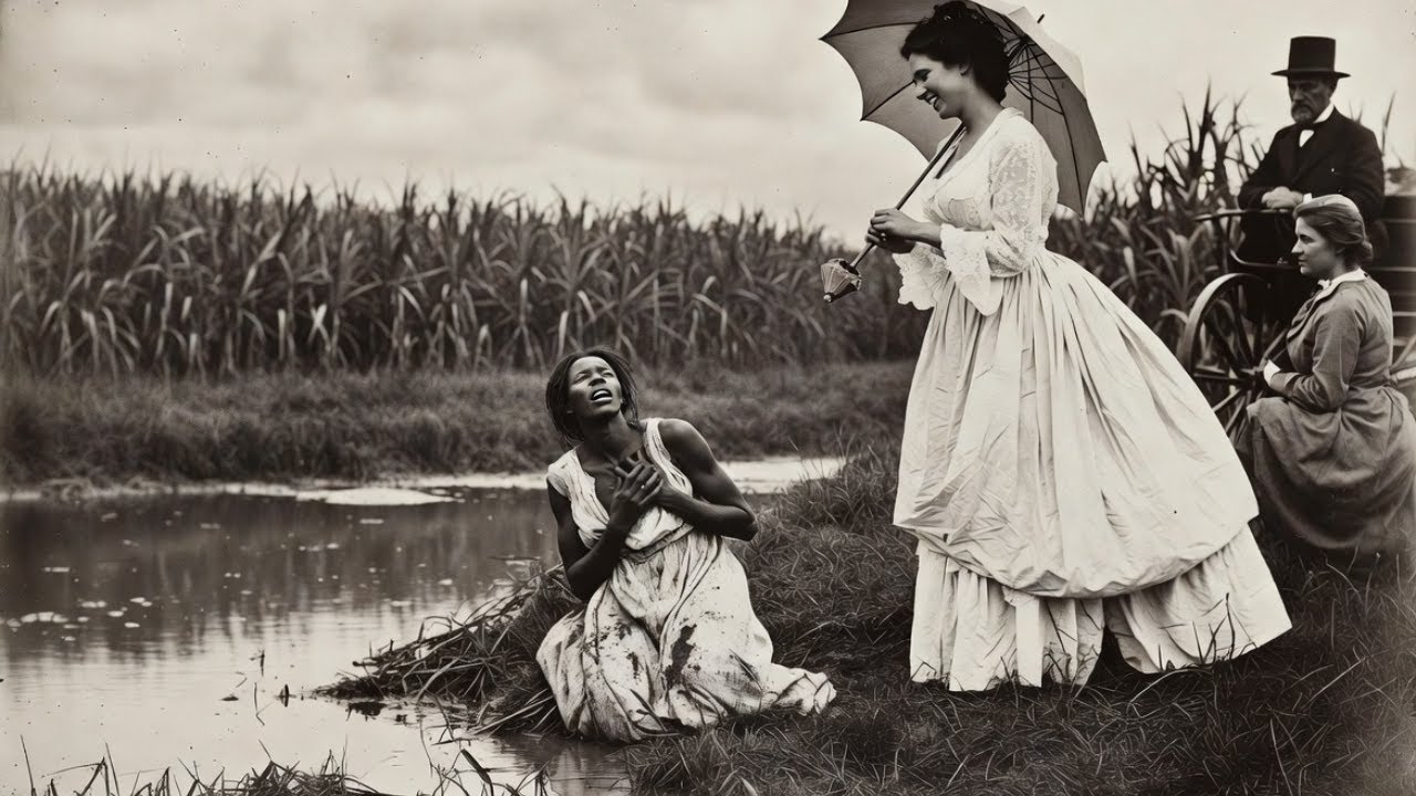 Aquel día, la maldición nació en la quietud sofocante de la tarde. El aire era tan espeso que parecía poder masticarse, y el sol caía sobre los campos como una acusación ardiente. Cerca de los lmites de los cañaverales, donde el suelo se convertía en una orilla lodosa frente a un estanque turbio, una joven esclava llamada Elsie yacía de costado. Su pecho subía y bajaba con un esfuerzo agónico.