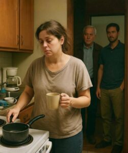 Al día siguiente, el padre llegó temprano. Encontró a su nuera en la cocina, recogiendo los juguetes de los niños que habían quedado tirados por el suelo. Su cabello estaba recogido en un moño desordenado, llevaba un vestido sencillo, sin maquillaje. Preparaba el café mientras tarareaba bajito una canción, aunque sus hombros parecían cargados de cansancio.