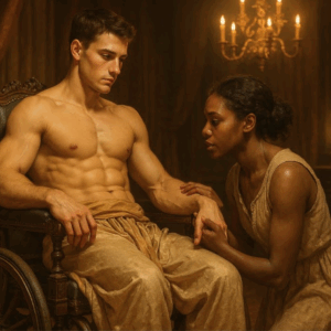 Las pesadas puertas talladas se abrieron, y el aire, denso con cera derretida e incienso, la envolvió. La visión del Príncipe confirmó los rumores sobre su imponente presencia. Estaba sentado en una ornamentada silla de ruedas de respaldo alto, con el torso desnudo y los músculos tensos. Su mirada no era de curiosidad ni de deseo, sino una evaluación fría y calculadora.