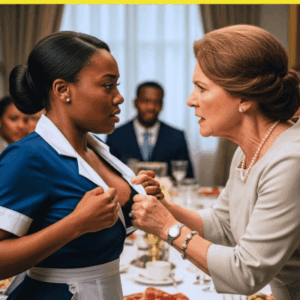 Antes de que nadie pudiera reaccionar, los dedos enguantados de Eleanor agarraron la blusa de Mia por la parte delantera y, con un tirón violento, la rasgaron por la mitad. La delicada tela blanca se rasgó con un siseo, dejando al descubierto la ropa interior de satén de Mia y el pequeño collar de oro que ahora colgaba ligeramente sobre su pecho. Estallaron los chismes. Las copas de vino temblaron, las servilletas cayeron.