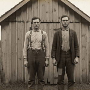 Ezekiel, de 41 años, era la personificación de una paciencia depredadora, un hombre de hombros anchos y una quietud antinatural. Amos, de 36, poseía una complexión similar, pero se movía con una energía nerviosa y ojos siempre escudriñadores. Habían heredado trescientas acres de bosque y mantenían un pequeño aserradero en Beaver Creek. Su padre, Luther Krenshaw, había muerto en 1887 en circunstancias turbias que la comunidad atribuyó a un accidente, contenta de ver partir a un hombre violento. Los hermanos, silenciosos y reclusivos, pagaban sus deudas en monedas de plata y completaban sus transacciones con conversación mínima, una eficiencia que camuflaba su verdadera operación.
