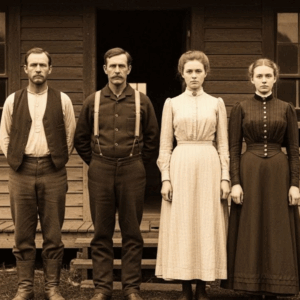Hay una fotografía enterrada en los archivos del Condado de Carter de la que nadie habla. Ni los bibliotecarios, ni la sociedad histórica, ni siquiera las familias cuyos nombres están escritos al dorso. Muestra a dos hombres parados hombro con hombro frente a una iglesia de madera en 1892. Hermanos. Sus trajes son oscuros, sus rostros severos, sus manos descansando sobre los hombros de dos jóvenes vestidas de blanco. Las mujeres sonríen.