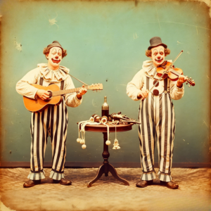 ellos No eran payasos de circo tradicionales. ellos eran lo que los victorianos llamaban grotescos payasos musicales, una categoría peculiar de entretenimiento que combinaba exagerados comedia fisica con musical actuaciones. Choke tocaba el violín con técnica sorprendentemente competente, mientras Risita acompañada de guitarra.