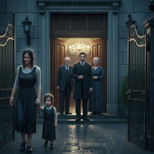 La tormenta golpeaba como látigos cuando quedé sola en los escalones helados de la mansión Whitmore. Mis brazos abrazaban a Lily con desesperación, intentando protegerla del agua y del mundo que acababa de expulsarnos.