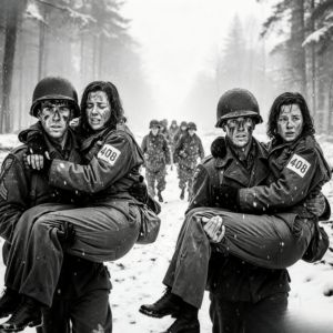 Las respuestas aún no se formaban, pero la estructura que las había contenido se estaba desmoronando. Caminaron durante horas, el tiempo perdió sentido. Los hombros del cabo temblaban por el esfuerzo. Cuando soldado insistió en llevarla, finalmente accedió. El traslado fue cuidadoso. Greta nunca fue dejada caer, nunca fue tratada solo como un peso.