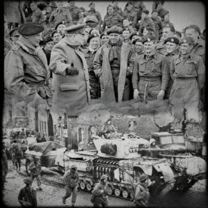 Mientras tanto, 200 km al este, un convoy de tanques británicos está siendo cargado en barcos de transporte. Estos no son tanques ordinarios. Pertenecen a la sepa, novena división blindada, una unidad tan secreta que incluso la mayoría de los comandantes aliados no saben que existe. Los británicos los llaman los divertidos de Hubert en honor a su esténico comandante, el mayor general Percy Hubert, un hombre que cree que los tanques convencionales son obsoletos para la guerra de fortalezas.