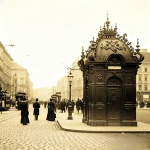 Quioscos sanitarios de hierro fundido, ricamente ornamentados, colocados directamente sobre la acera. No en patios traseros, no dentro de edificios, no conectados visiblemente a nada. Eran conocidos por distintos nombres. En París, Vespienes, en Londres, public conveniences. En Viena y Berlín, simples instalaciones urbanas.