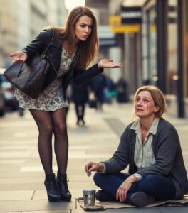 Había otra figura constante en mi vida, una sombra de un tipo muy diferente: “La Loca de los Gatos”, una mendiga que vivía en los soportales de la plaza. Era una mujer sin edad, sucia, con la mirada perdida y el pelo enmarañado. Siempre estaba allí, murmurando para sí misma, rodeada de gatos callejeros. Para mí, y para todo el pueblo, era parte del paisaje, una molestia a la que arrojarle una moneda con desprecio o a la que mis amigas y yo, en nuestra cruel adolescencia, habíamos humillado más de una vez. “¡Quítate de en medio, sucia!”, le gritábamos. Mi padre nunca nos reprendió por ello.