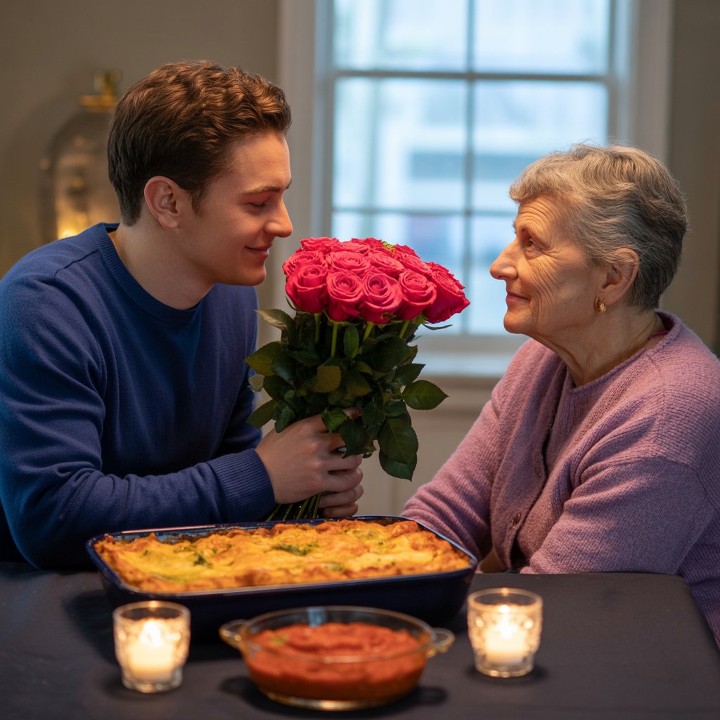 Media hora después, estábamos sentados a la mesa, con la lasaña humeante entre nosotros, las velas todavía encendidas y las rosas como centro de mesa.