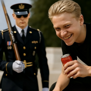 La lata de refresco golpeó el pavimento con un ruido sordo, salpicaduras de líquido pegajoso a través de las botas lustradas del guardia de la tumba. El abarrotado Arlington se quedó helado, sus jadeos atravesando el calor del verano. tyler Grayson, un diseñador de 13 años zapatillas, sonrió, su teléfono ya grabando el clip viral perfecto.