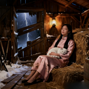 Mateo tomó su abrigo y salió hacia la oscuridad. Un relámpago rasgó el cielo, iluminando por un instante la silueta familiar del granero, viejo, desgastado, apenas en pie. Cuando Mateo empujó la puerta del granero, esperando encontrar a un animal asustado, se quedó paralizado. Allí, en un rincón entre los fardos de Eno, no estaba el becerro, sino Lin Mei.