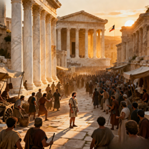 Pero también había otros, miles de otros, artesanos que trabajaban desde el alba hasta la noche, esclavos que cargaban bloques de mármol para las construcciones interminables, familias enteras viviendo en habitaciones estrechas detrás de los grandes edificios. Gente que nunca entraría al teatro, que nunca caminaría por las columnatas reservadas para los ciudadanos con derechos plenos.
