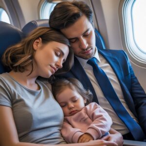 El zumbido de los motores del avión componía una canción de cuna a la que pocos podían resistirse. Emily Sanders, una joven madre con profundas ojeras, finalmente se rindió al agotamiento. Su pequeña hija, Lily, dormía plácidamente en sus brazos. Hacía semanas que Emily no dormía más de dos horas seguidas, y este vuelo transatlántico no era la excepción.