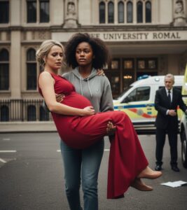“Aquí estoy.” Kesha sube a la ambulancia. “Señora, tengo formación médica. Puedo ayudar.” El trayecto al Metro General es un torbellino de constantes vitales y oraciones susurradas. La presión arterial de Eleanor sube peligrosamente: preeclampsia clásica. Sin intervención inmediata, tanto la madre como el niño podrían morir.