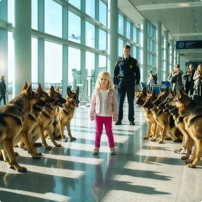 No fue un silencio normal, sino uno pesado, inquietante, como si el tiempo se hubiera detenido. De repente, 15 perros policía rompieron su formación al mismo tiempo y corrieron hacia una niña pequeña que estaba sola junto a la puerta de embarque número 12.