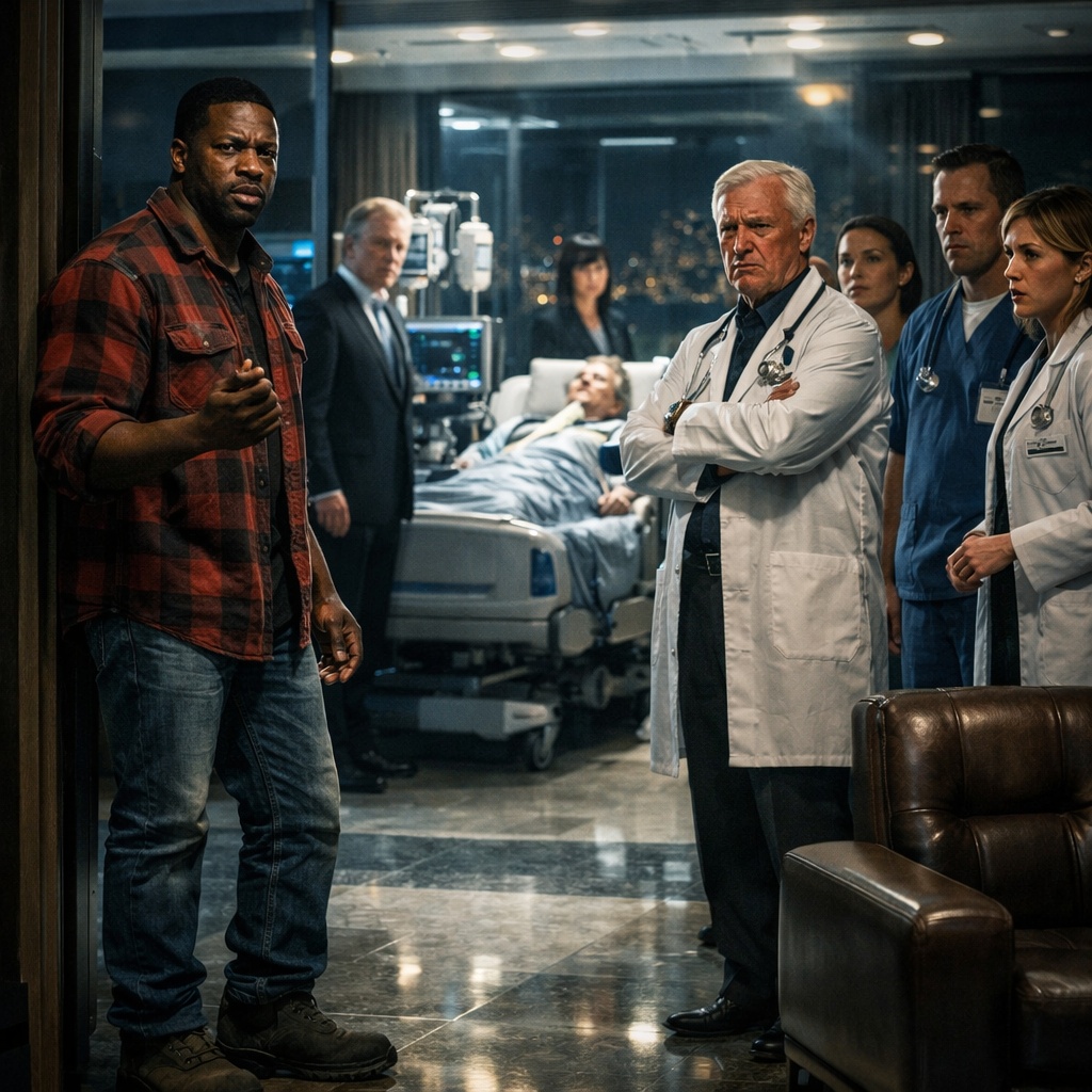 Marcus looked through the glass wall into the ICU suite. The woman on the bed—Evelyn Mercer, billionaire founder of Mercer Logistics, according to the whispers downstairs—looked waxy and small against all that money and machinery.