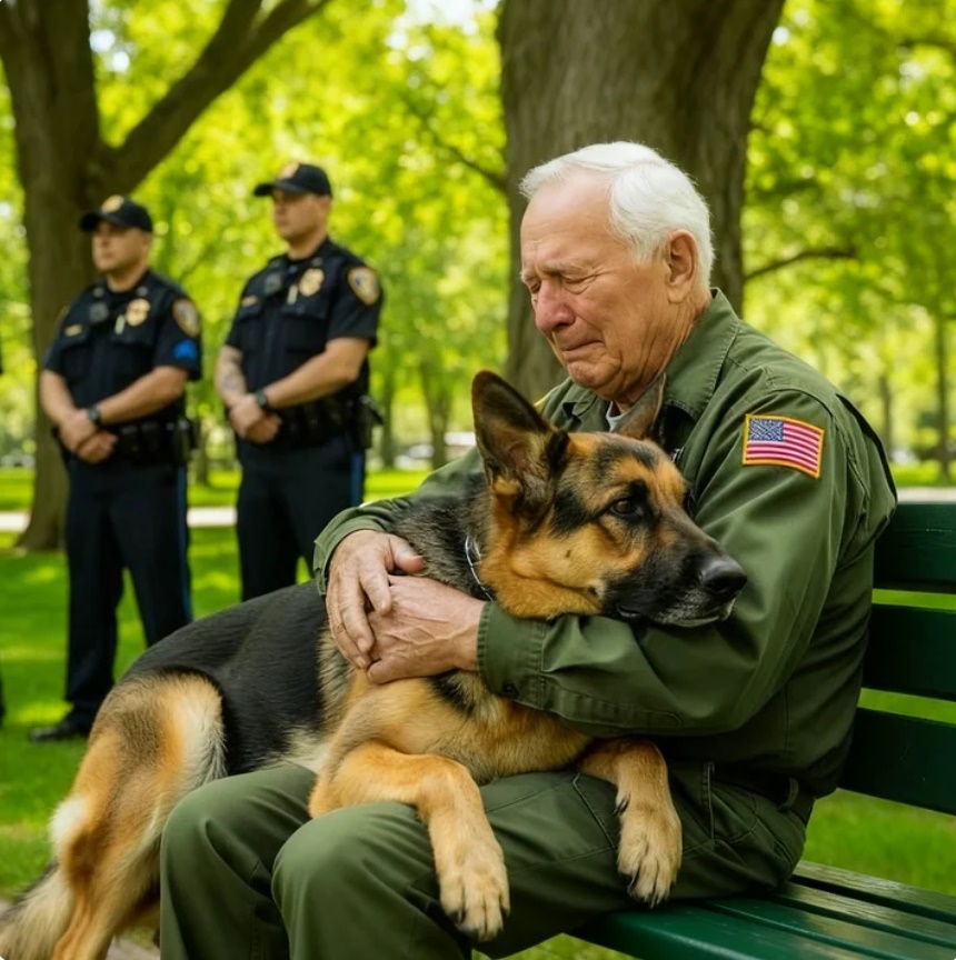 El pastor alemán se sentó y apoyó su enorme cabeza en el regazo del anciano.