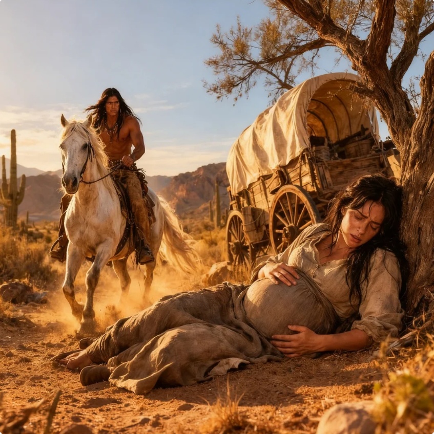 El desierto de Arizona no tenía compasión por nadie. En agosto, el sol no alumbraba: castigaba. Caía sobre la tierra como una sentencia, secando el aire, agrietando los labios, volviendo cada piedra una pequeña brasa. Lucía Montemayor lo sintió desde la madrugada, cuando el primer dolor le atravesó el vientre como una cuchillada y comprendió, con una claridad helada, que su hijo no iba a esperar a que la caravana llegara a destino.