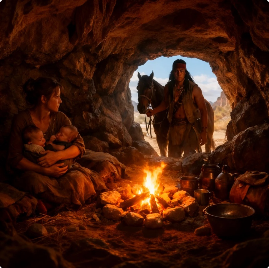 Tauli se detuvo en seco. No era común oír a un niño llorando tan lejos de la aldea. Ajustó su lanza, afinó el oído y siguió el sonido, descendiendo entre rocas hasta encontrar una abertura casi invisible detrás de arbustos secos.