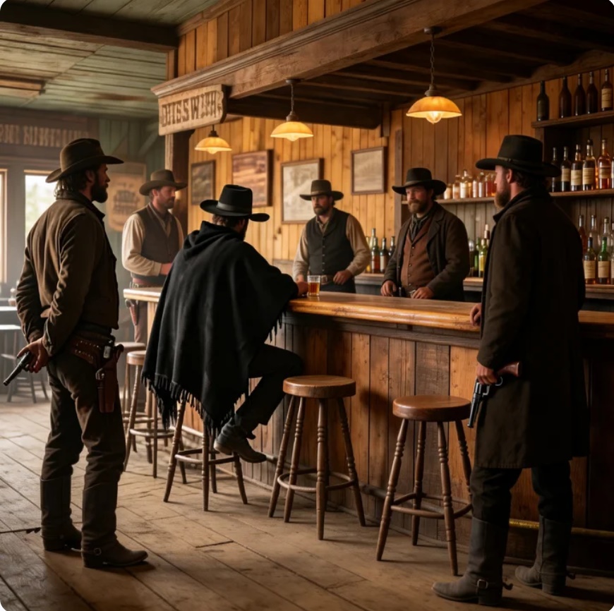 con un blanco fácil. Su error fatal queda claro cuando aquel hombre misterioso desenfenda y dispara a la
