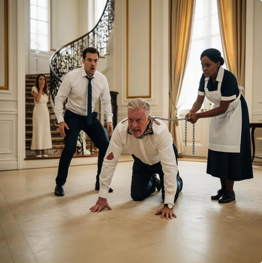 “Years ago… your father—” she pointed to the man on the floor, still trembling—“he and his brother… they trapped me down here. Treated me like an animal. Made me bark. Made me crawl.”