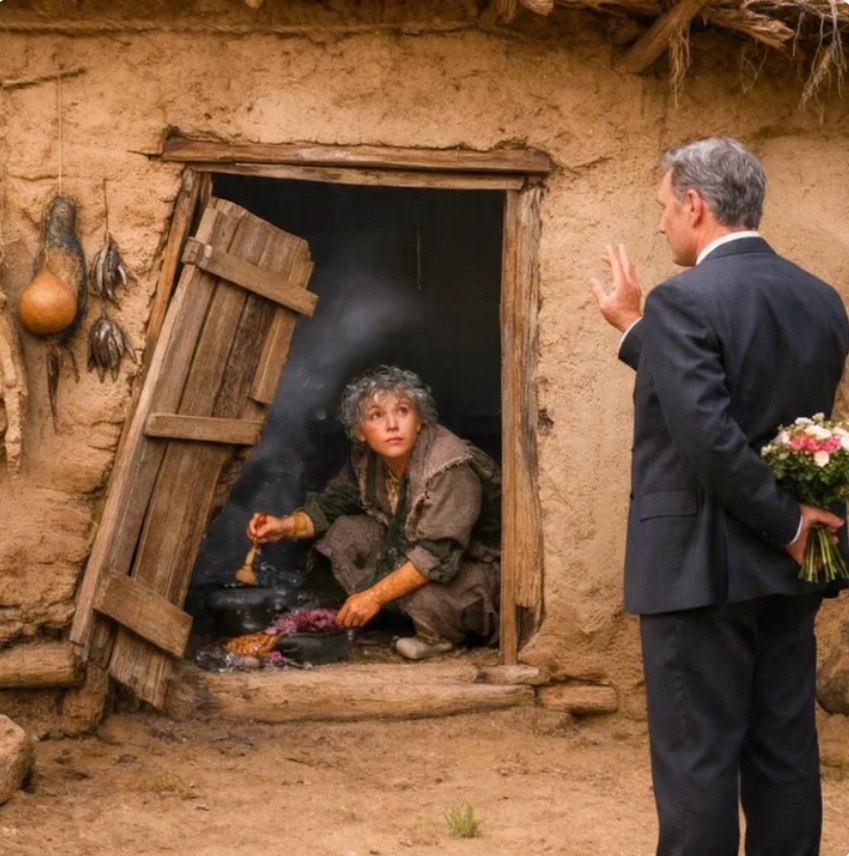 Él avanzó con el ramo en las manos, como si esas flores pudieran cubrir diecisiete años de ausencia.
