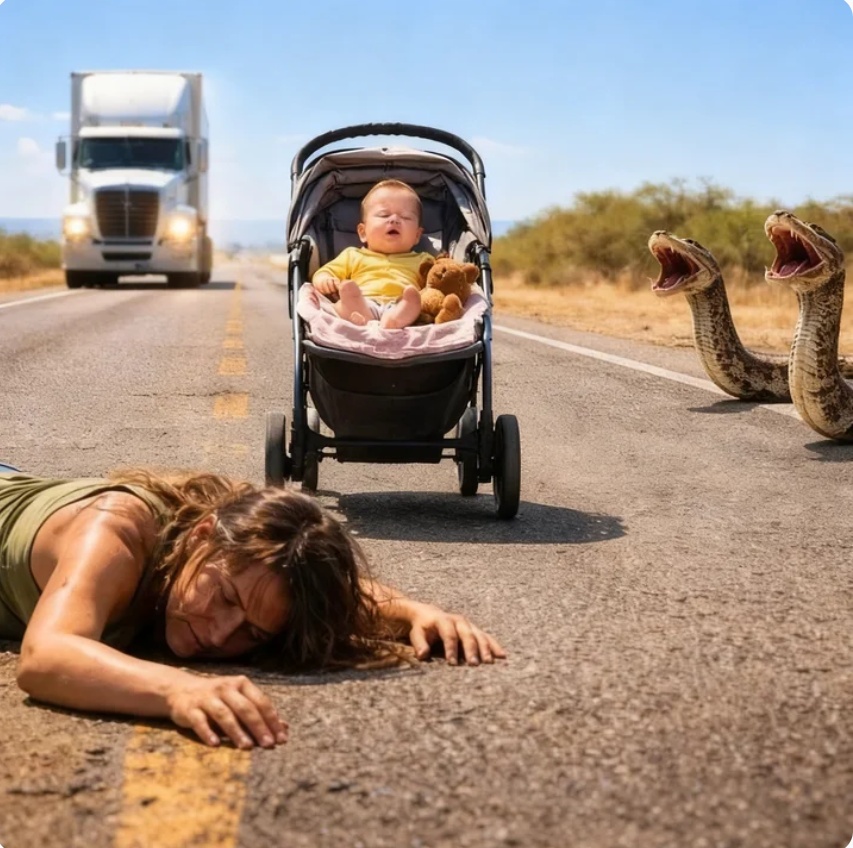 El camión rugió, se atravesó bloqueando ambos carriles. El silencio que siguió fue peor que el ruido. Solo el llanto del bebé… y el viento.