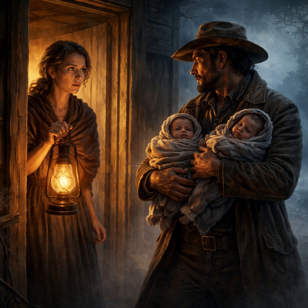 Years later, folks in town would tell the story like it had always been fate. The lonely ranch woman. The widowed father carrying twins through the cold. One knock on the door. One choice made out of mercy. A whole life built from it.