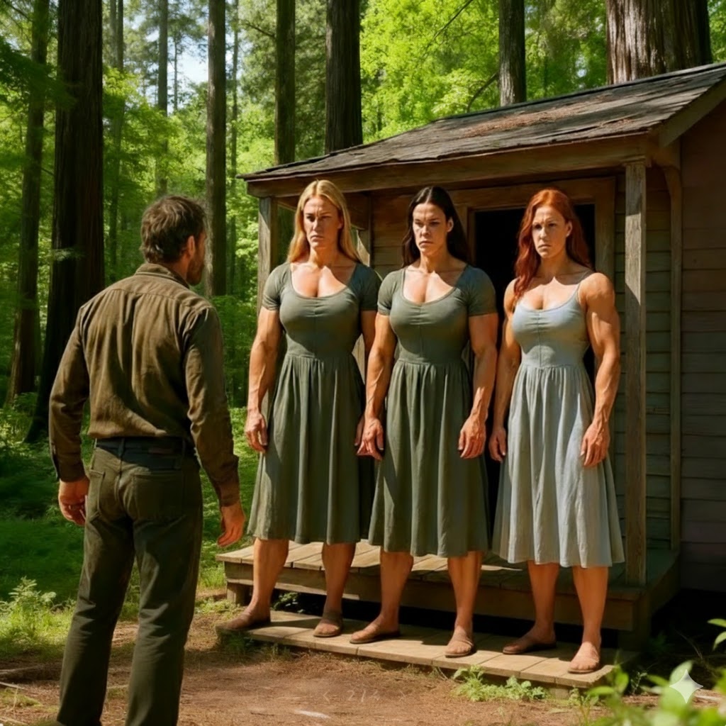 Al desmontar, el viento se detuvo como si el mundo contuviera el aliento. La puerta principal se abrió lentamente, rechinando como un lamento antiguo, y de la oscuridad surgieron tres mujeres.