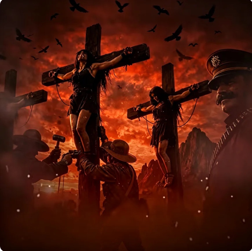 como Cristo en el Gólgota, tres hermanas jóvenes agonizan bajo un sol que no