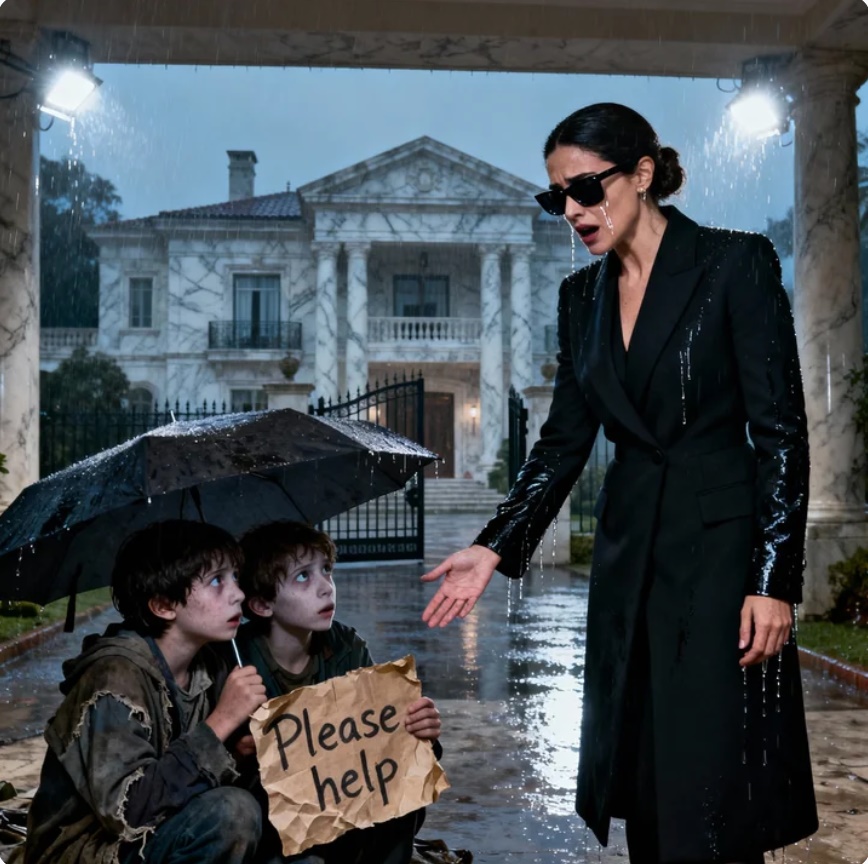 Valentina bajó con cuidado, protegiendo a los bultos contra su pecho empapado. Sus tacones resonaron en el granito de la entrada.