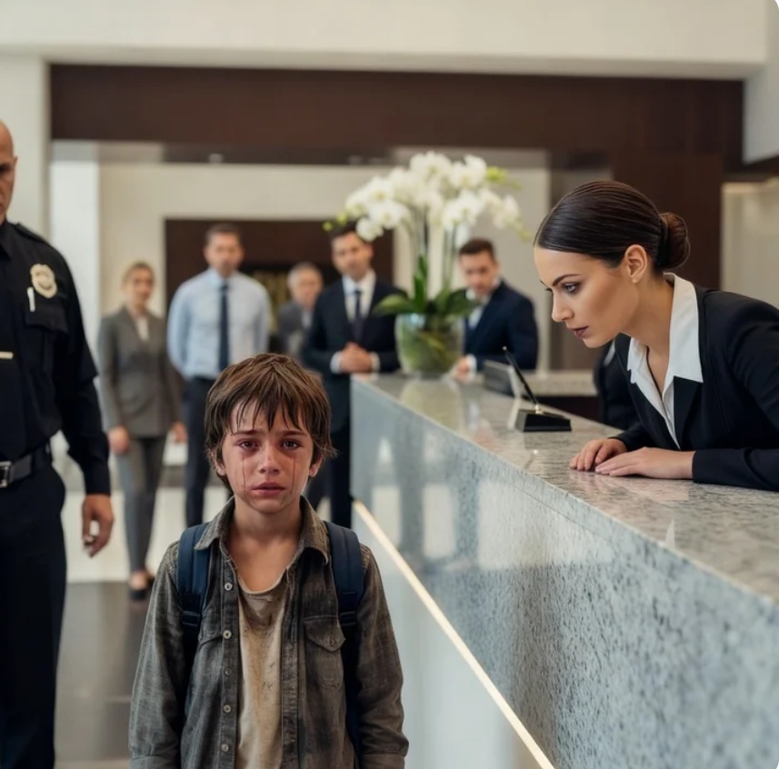La recepcionista se inclinó hacia él, con una actitud que no necesitaba palabras. El chico bajó la cabeza, no por vergüenza, sino por control. Había aprendido a soportar.