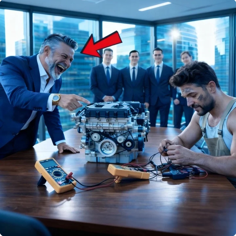 su mesa de juntas y lo retó 10 ejecutivos. Pero cuando el mecánico lo encendió, la sonrisa del millonario se