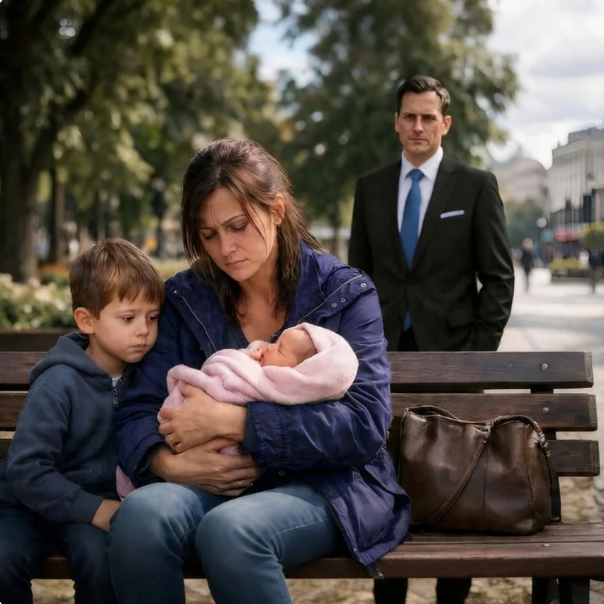 En un banco de madera desgastada, arrinconada contra la intemperie, una mujer intentaba cubrir con su cuerpo a dos niños. Tenía a una bebé envuelta en una manta rosa descolorida y, pegado a su costado, un niño de unos seis años que buscaba calor donde ya no quedaba casi nada. La escena lo golpeó antes de que pudiera pensar. Y luego la reconoció.