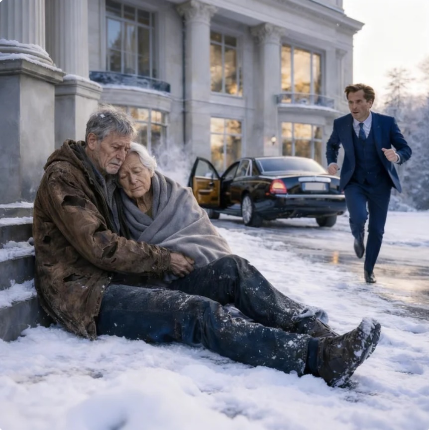 la vida estaban sentados en la nieve como indigentes, frente a la casa que él