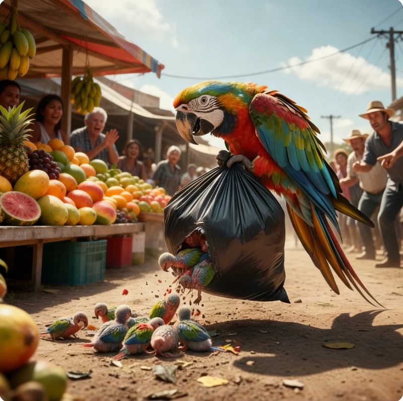 guacamaya retrocedió otro, no con agresión, con miedo, como si alguien le hubiera enseñado que si soltaba eso,