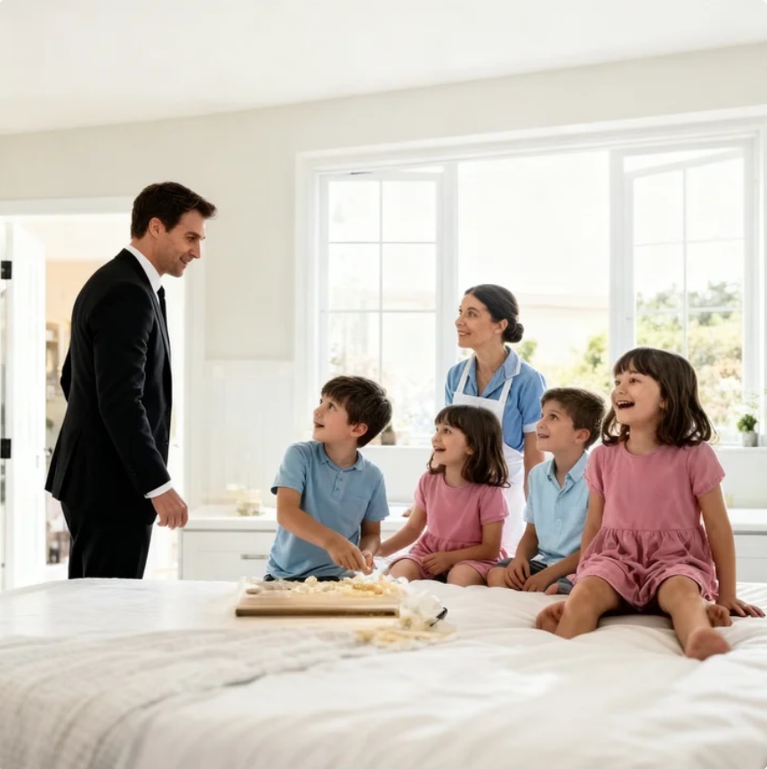 Valentín, incapaz de enfrentar su propio dolor, delegó la crianza. Niñeras iban y venían. Ninguna duraba demasiado. Algunas se sentían intimidadas por la casa. Otras no soportaban el silencio.