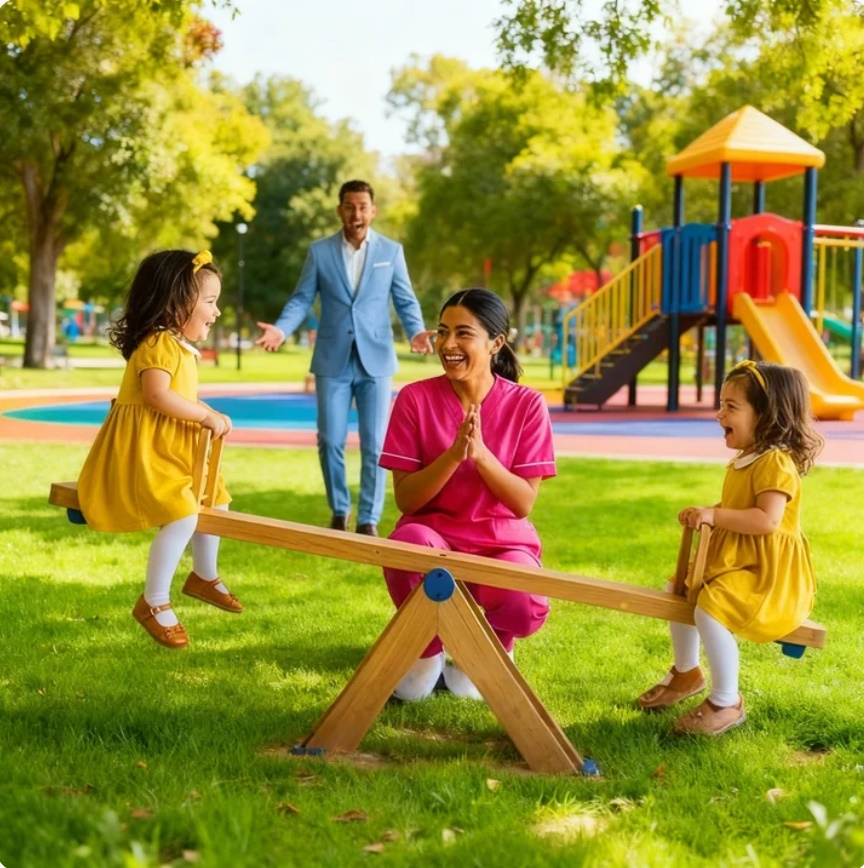 Y encima de un balancín improvisado —una tabla vieja apoyada sobre un tronco tosco, nada lujoso, nada caro— estaban sus hijas gemelas.