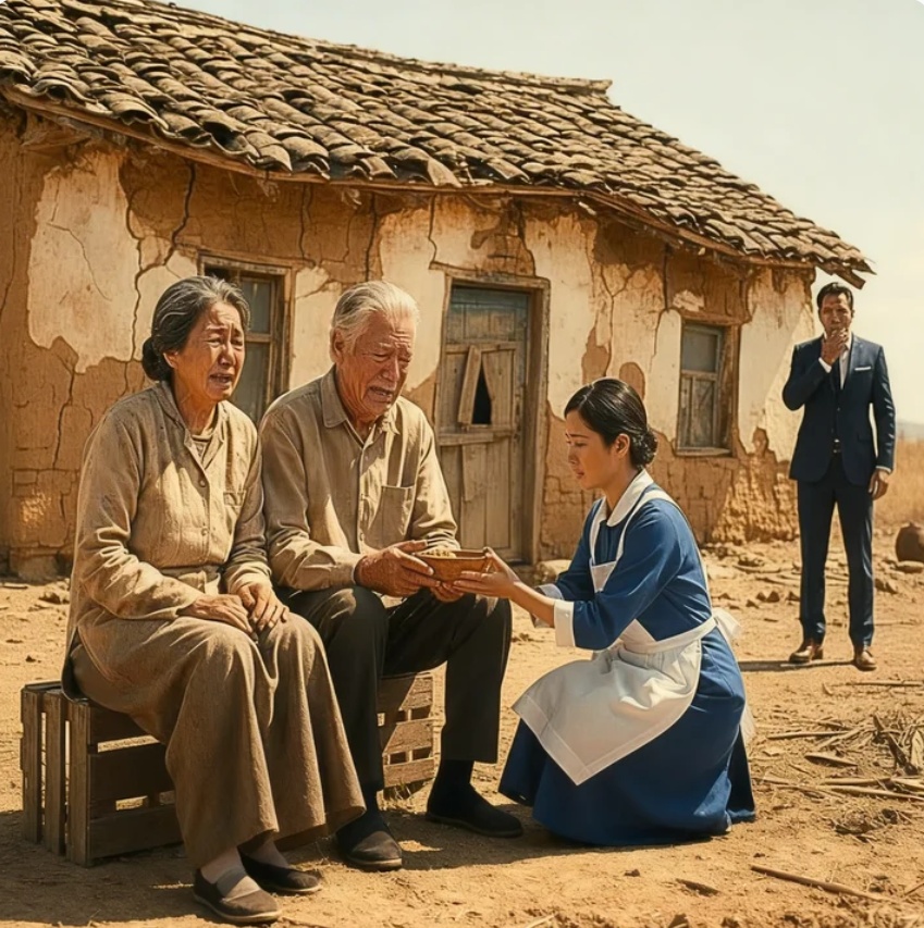 El anciano temblaba al sostener la cuchara. La mujer lo miraba con ternura infinita.
