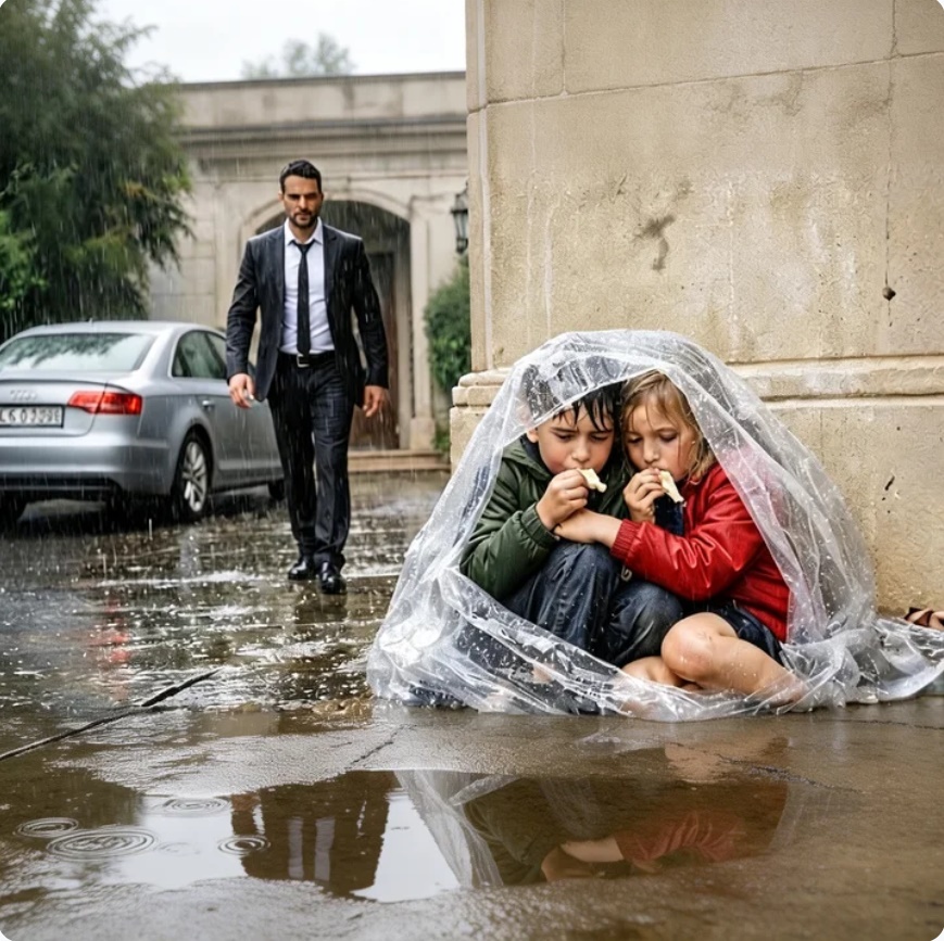 dio el primer paso hacia sus hijos. La lluvia caía con furia, golpeando el
