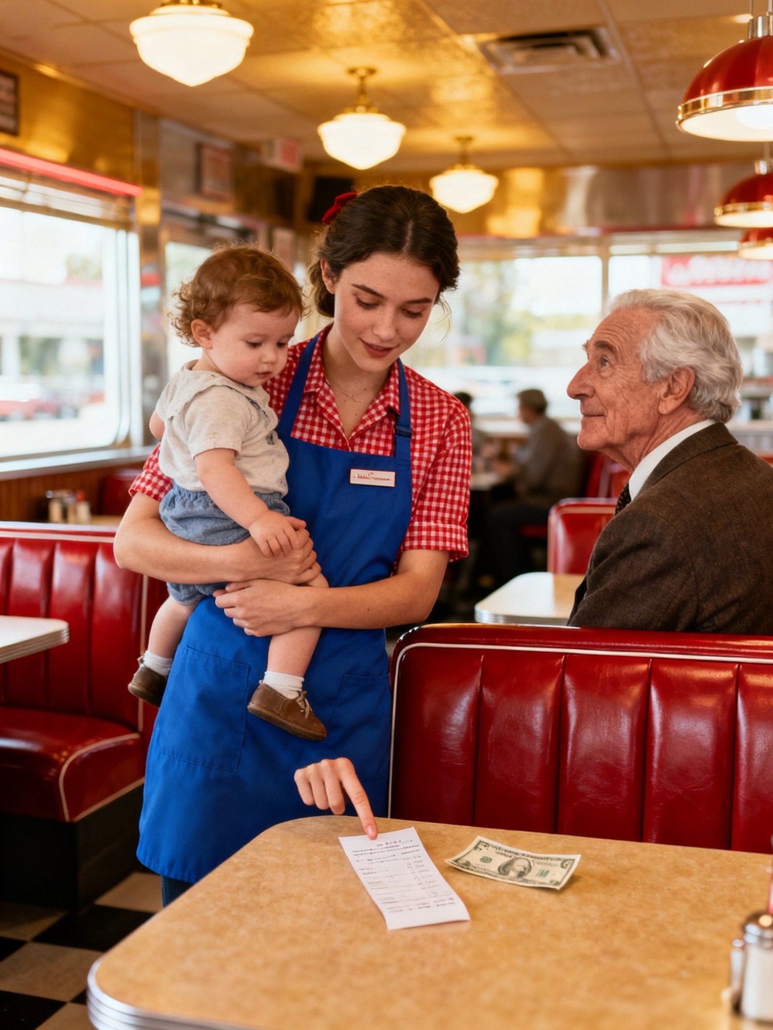 Comió en silencio, con modales pausados. Cuando terminó, colocó los cubiertos perfectamente alineados, se deslizó fuera de la cabina y salió del restaurante sin decir una palabra más, desapareciendo en el aire fresco de la tarde.