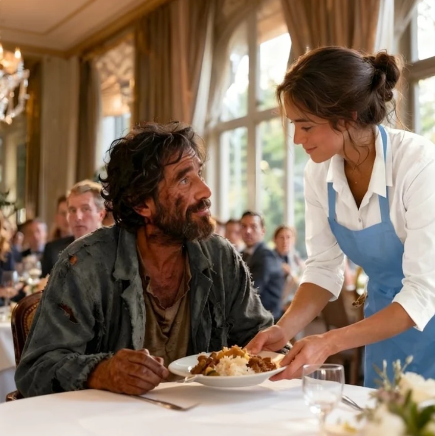 María pronunció aquellas palabras con una dulzura firme, sin titubear, frente al hombre sentado en el rincón más oscuro del restaurante. Nadie más se había detenido a verlo. Para los clientes elegantes, era apenas una mancha incómoda en medio del lujo.