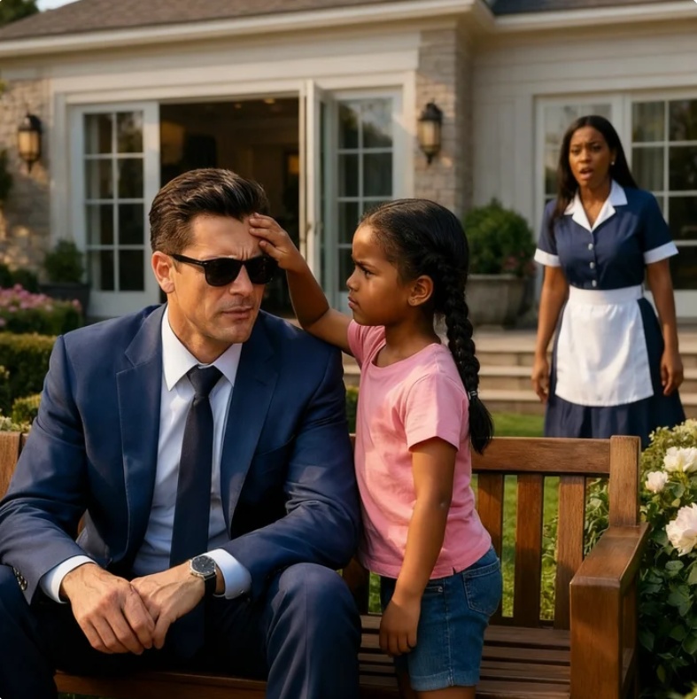 Aquella tarde, sentado en una banca de madera en su jardín, rodeado de rosas que ya no podía ver con claridad, sintió algo que lo sacó de sus pensamientos. Una mano pequeña, tibia, se posó sobre su frente.
