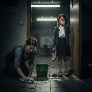 El reloj marcaba la medianoche. Yo seguía de rodillas, fregando el suelo de la oficina, con las manos enrojecidas y el olor a lavandina colándose hasta el fondo de mis pulmones. El cansancio me nublaba la vista, pero no podía darme el lujo de detenerme. Cada minuto de trabajo significaba unas monedas más para mi hija.