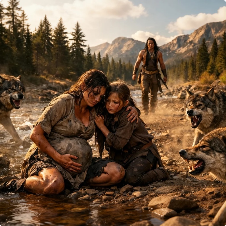 Tres días sin agua. Tres noches escuchando los aullidos lejanos que parecían rodearlas cada vez más. Su hija Lucía, de apenas cinco años, apenas podía abrir los ojos. El vestido rasgado de Catalina estaba cubierto de polvo, sus pies descalzos llenos de heridas, y el vientre de seis meses de embarazo pesaba como si cargara el mundo entero bajo el sol despiadado de California.