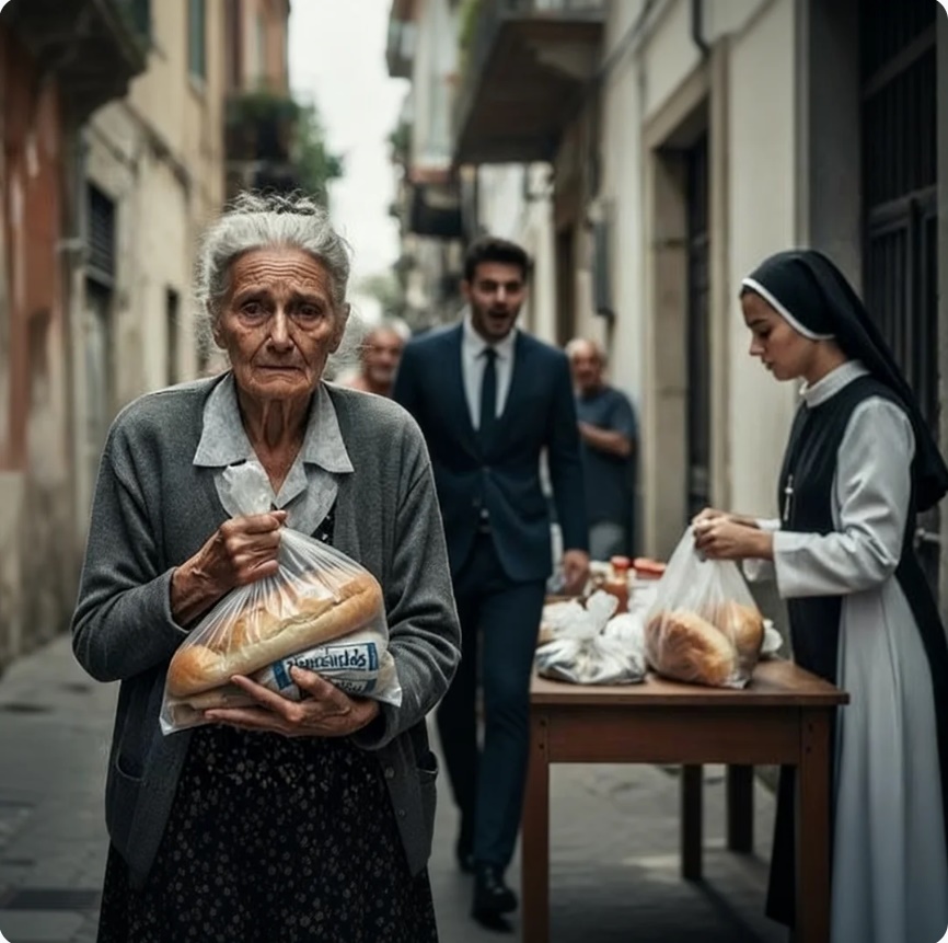 Elena avanzó en la fila. Una monja joven le entregó una bolsa con pan y algunos alimentos.