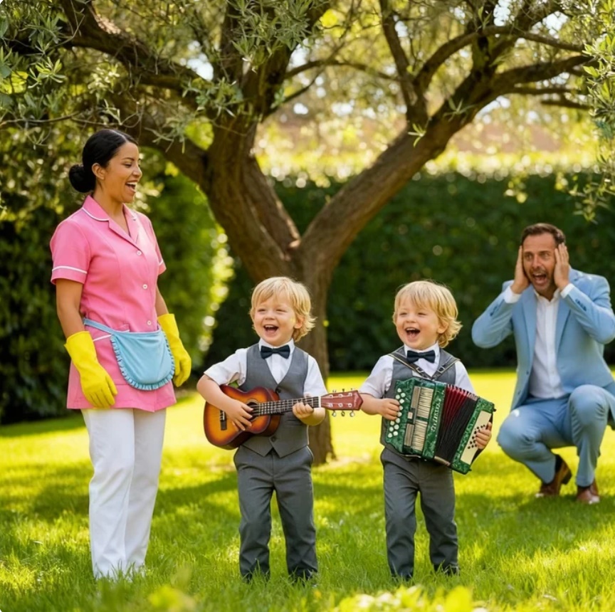Al día siguiente, Inés trajo de su casa un acordeón viejo y una guitarra gastada. Los dejó cerca de los gemelos y empezó a tocar sola, sin expectativas. Arthur miró el acordeón con curiosidad. No lo tocó, pero lo miró. Dos días después, lo sostuvo entre sus brazos.